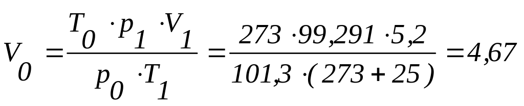 З рівняння об'єднаного газового закону виразимо V0 і розрахуємо його значення: