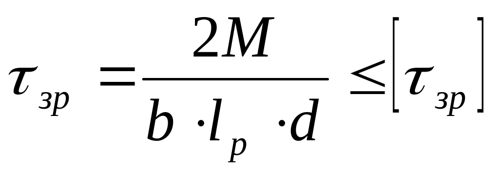 Основним розрахунком для шпонки є розрахунок на зминання. При цьому площею зминання є площа частини шпонки, що виступає за діаметр вала.