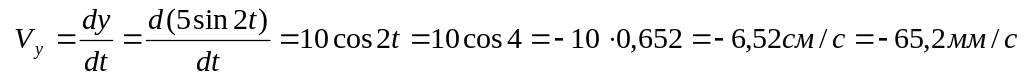 Для отримання рівняння траєкторії з рівнянь (1) необхідно виключити параметр часу t. Для розрахунку швидкості точки необхідно знайти проекції швидкості на вісі координат: