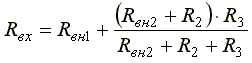 Из схемы удалены все источники (Е1 и Е2), т.е. эти ЭДС мысленно закорочены. Входное сопротивление Rвх определяют, свертывая схему относительно зажимов 1-1'
