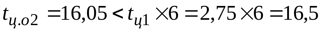 Порівнюючи тривалість циклу обробки на 6-й операції tц = ton6 = 15,1 хв з тривалістю циклу роботи оператора, бачимо, що tцо2 = 16,05 > tц6 = 15,1. А повинно бути навпаки. Проте тут немає суперечності, оскільки tц6 слідує ще порівняти з тривалістю такту випуску, в даному випадку з 6τ.