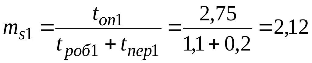 Коефіцієнт багатоверстатного обслуговування по формулі (1.8):