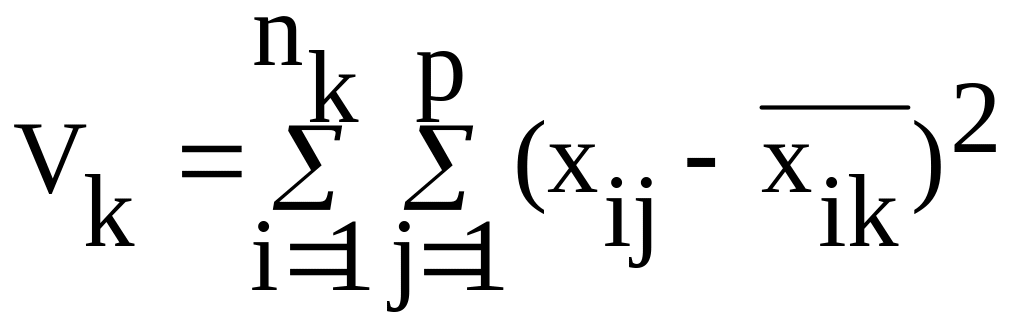 Метод Уорда. Цей метод зумовлює, що на першому кроці кожний кластер складається з одного об'єкта. Спочатку об’єднуються два найближчих кластера. Для них визначається середнє значення кожної ознаки та розраховується додаток квадратів відхилень Vk:
