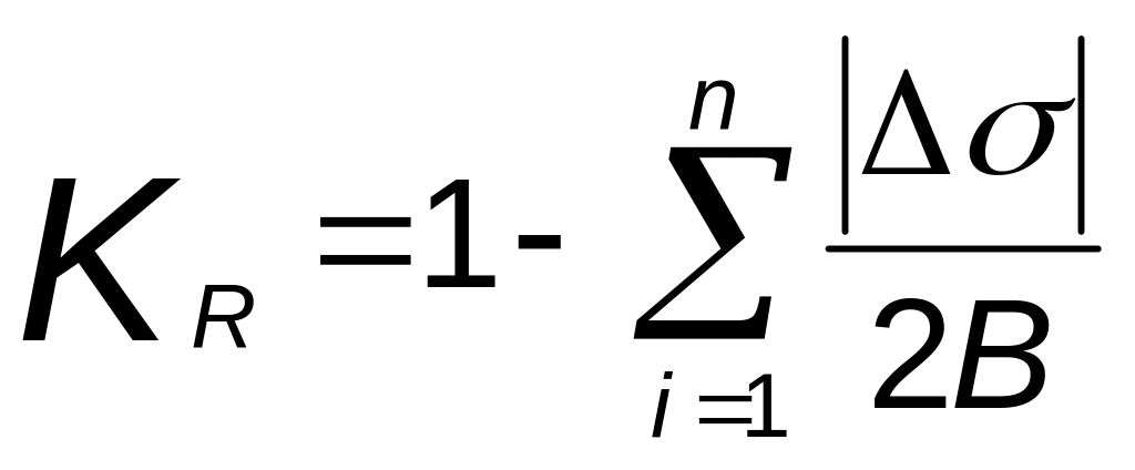 Дана формула враховує усі відхилення від плану (як позитивні, так і негативні) за абсолютною величиною, є більш коректною, а сам коефіцієнт змінюється в межах від нуля до одиниці.