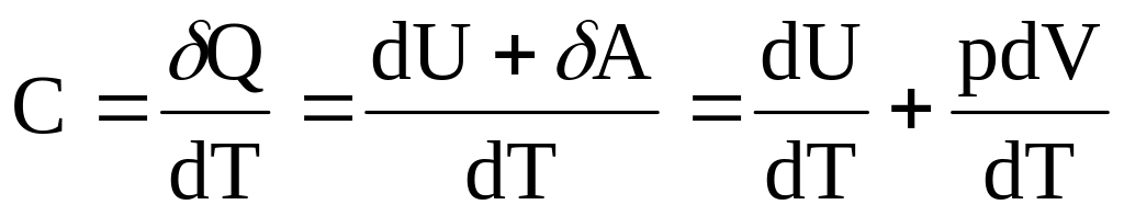 Из этой формулы видно, что теплоёмкость зависит от изменения внутренней энергии и от изменения второй переменной , например, объёма.
