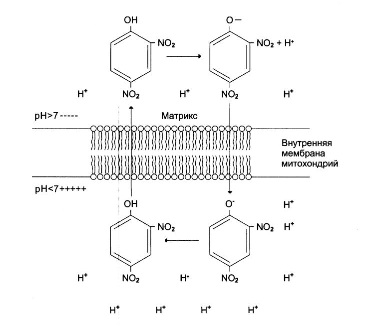 Тыныс алу мен фосфорланудың қосарлануы туралы эксперименттік дәлелдемелер ионофорлар арқылы алынған. Бұл заттардың молекулалары липофилді және иондарды өзіне байланыстырып мембрана арқылы алып өтуге қабілетті. Мысалы, 2,4 -динитрофенол (протондар) мембрана арқылы иондалған немесе иондалмаған күйде өтіп протонды протондық каналды айналып өтіп аз концентрациялы аймаққа жеткізеді. Сондықтан, 2,4-динитрофенол электрохимиялық потенциалды жояды, нәтижесінде субстраттар тотығуы жүріп жатқанның өзінде АТФ синтезі жүрмейді. Тыныс алу тізбегінің энергиясы, бұл жағдайда, жылу түрінде таралады. Ионофорлардың (ажыратқыштардың) пирогендік әсері осы механизммен түсіндіріледі. Табиғи ажыратқышқа тироксин гормоны, антибиотиктер валиномицин және грамицидин жатқызылады.