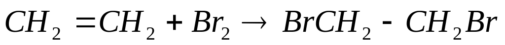 2. Галогендеу реакциясы. Алкендер галогендерді оңай қосып алады да, алкендердің қос галоген туындыларын түзеді.