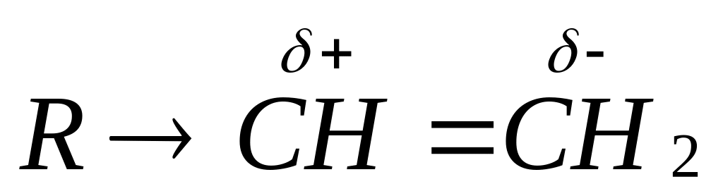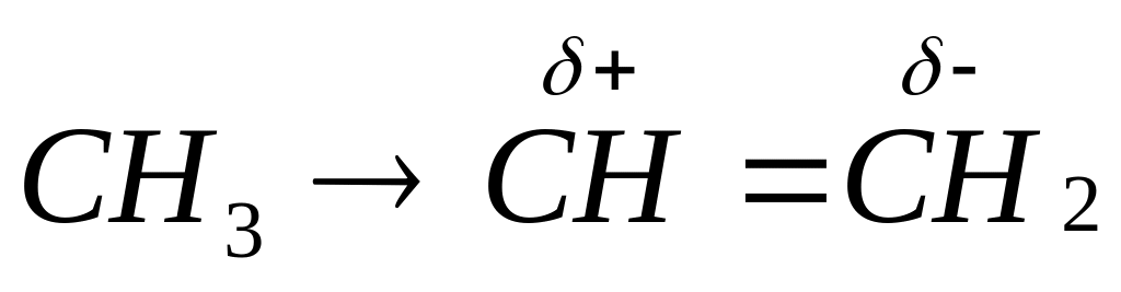 Сөйтіп алкил тобының (+J) қос байланысқа әсерін басқаша түрде былай көрсетуге болады.