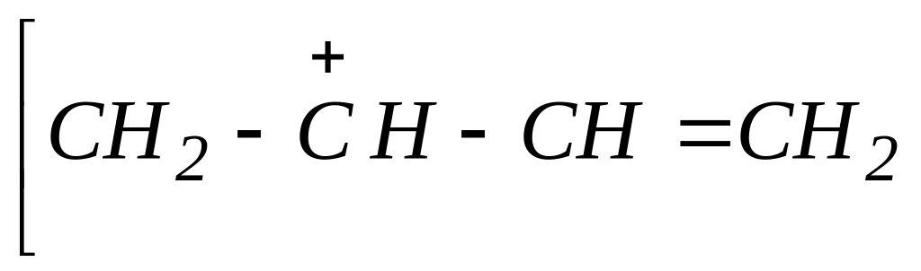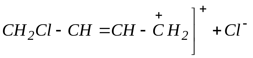 Бастапқы пайда болған σ - комплекс (А) өте тез 2 және 4 көміртек атомдарында оң зарядты қосарланған карбоний ионына айналады, мұны қос стрелкамен екі формула жалғастырып немесе (В) мен (Б) бір формуламен бейнелеуге болады. Бұл ион одан әрі 2 және 4 қалыптарға хлордың анионын қосып 1,2 және 1,4 - қосылу өнімдерін береді.
