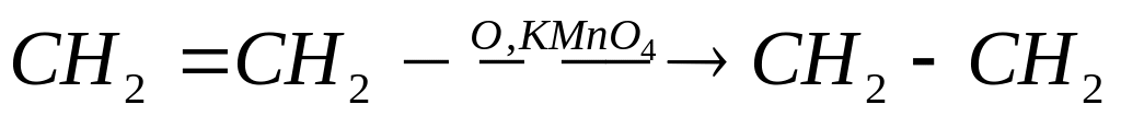 г) тотықтырғыштардың тегеурінді әсерінен этилендік қосылыстар, сол қос байланысы бар жерінен үзіледі: