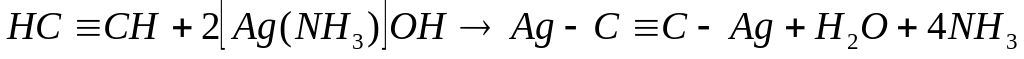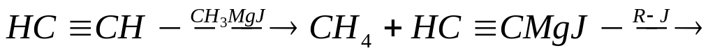 Ацетиленге металдардың қосылуы. Мұндай реакция метан немесе этилен гомологтарына тән. Реакция нәтижесінде ацетиленидтер түзіледі.