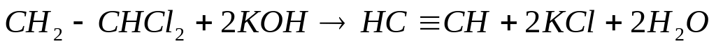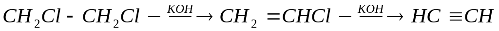 2. Қаныққан көмірсутектердің галоген туындыларына сілтінің спиртегі ерітіндісімен әрекет етсе ацетилендік көмірсутектер түзіледі.