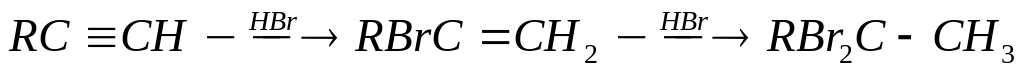Ацетилен туындыларына галогенсутектер де Марковников ережесі бойынша қосылад, яғни: