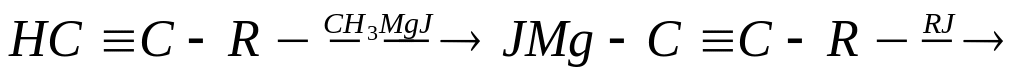 1. Ацетиленді алкилдеу әуелі ацетиленді металорганикалық қосылыстарға көбінесе натрий - ацетиленге немесе магний - галогенацетиленге айналдырады.