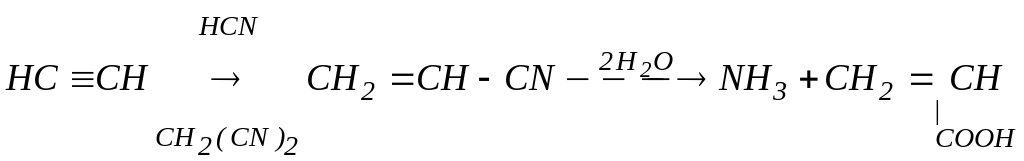 Акрил қышқылы.Өнеркәсіпте мынадай схема бойынша алады: