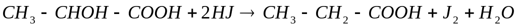1. -оксиқышқылдар карбон қышқылдарына айналып оңай тотықсызданады, мысалы иодты сутекпен әрекеттескенде: