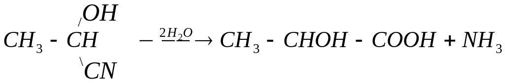 2. Оксинитрилдердің сабындануы. Оксинитрилдердің гидролизі -оксиқышқылдар береді. Бұл -оксиқышқылдар алудың көбірек қолданылатын әдістерінің бірі: