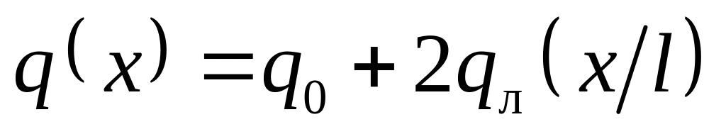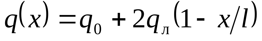 . У цих залежностях: qo – інтенсивність інерційних сил оболонки ротора, Па; qл – інтенсивність інерційних сил лопаток у центрі ротора, Па; x – осьова координата (рис. 2,б),