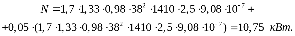 формулою Азинмаша в кВт за середньоквадратичним значенням тангенційних сил