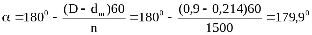 Кут обхвату меншого шківа розраховується за емпіричною формулою