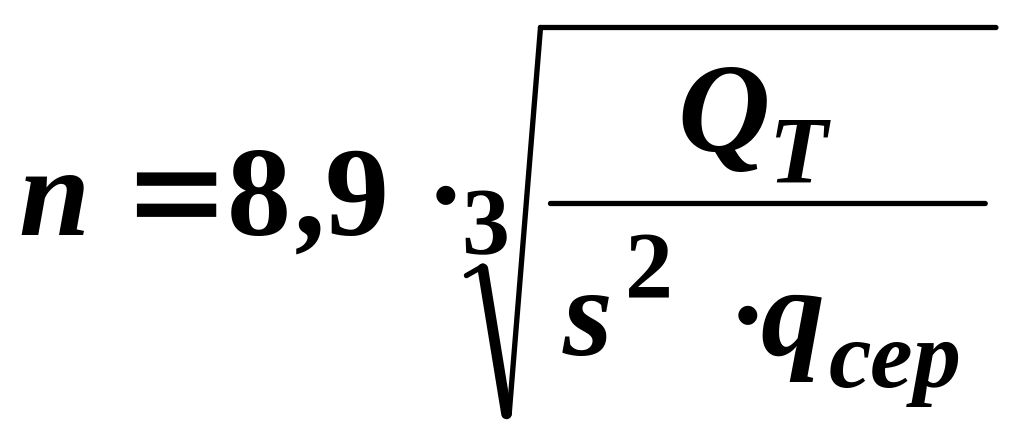 Потім задаємося стандартними значеннями n і за формулою (1.5) знаходимо відповідні їм значення Fпл., а з неї за формулою (1.6) визначаємо S, оскільки в ній відомі Fпл , n та QТ. Діаметр плунжера знаходимо за формулою (1.7).