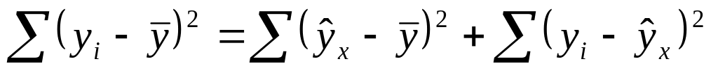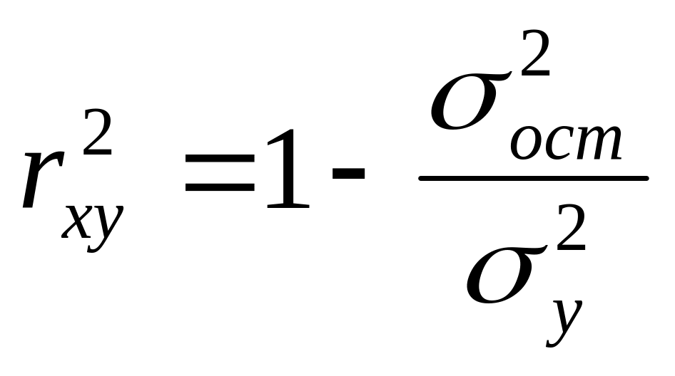 Коэффициент детерминации характеризует долю дисперсии результативного признака y, объясняемую регрессией, в общей дисперсии результативного признака: