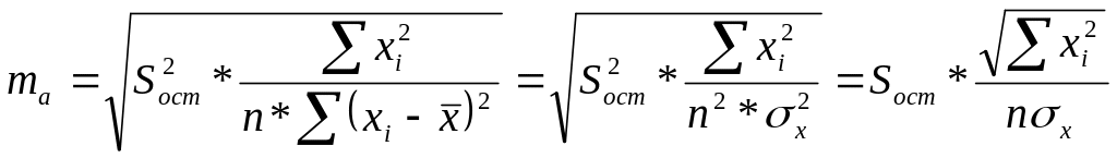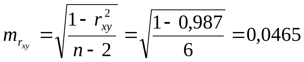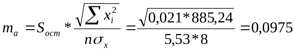 Для оценки статистической значимости коэффициентов регрессии и корреляции рассчитаем t-критерий Стьюдента и доверительные интервалы каждого из показателей. Рассчитаем случайные ошибки параметров линейной регрессии и коэффициента корреляции