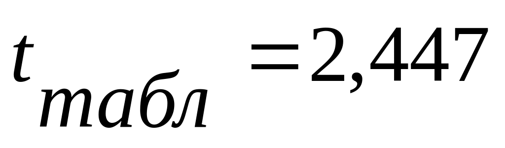 Табличное значение (к1=1, к2=6, =0,05): Fтабл =5,99. Так как Fфакт >Fтабл, то признается статистическая значимость уравнения в целом.