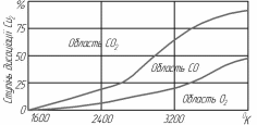 Рис. 10.1. Ступінь дисоціації вуглекислого газу залежно від температури