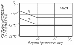 Рис. 10.2. Вплив витрати захисного вуглекислого газу на коефіцієнти