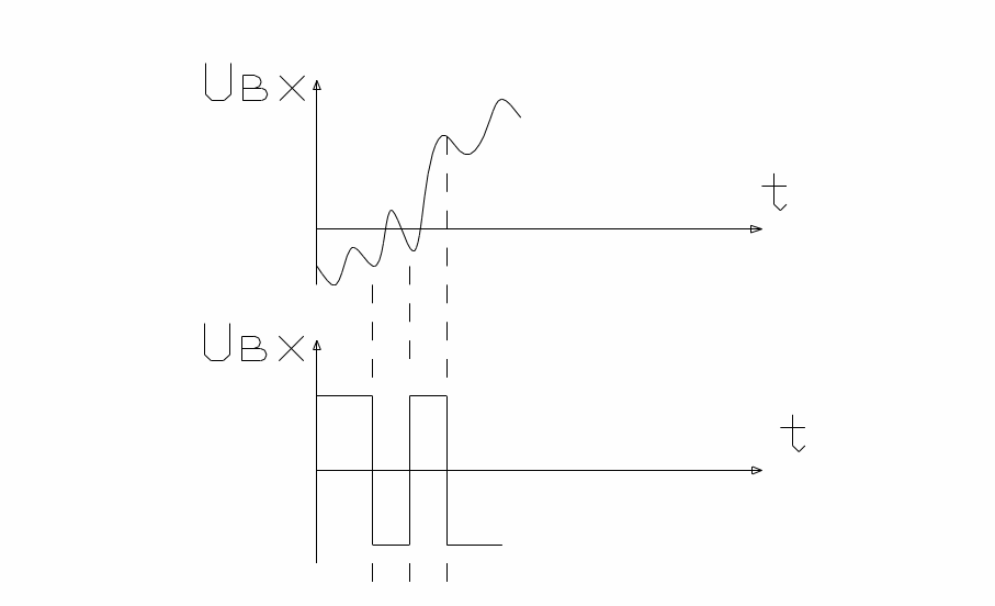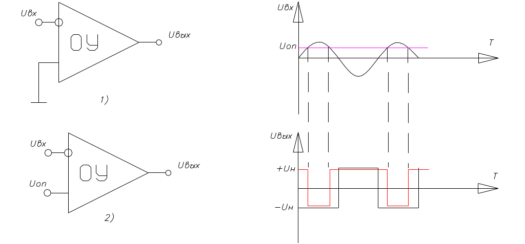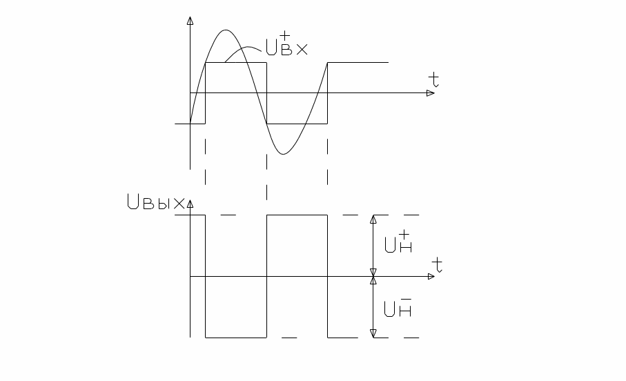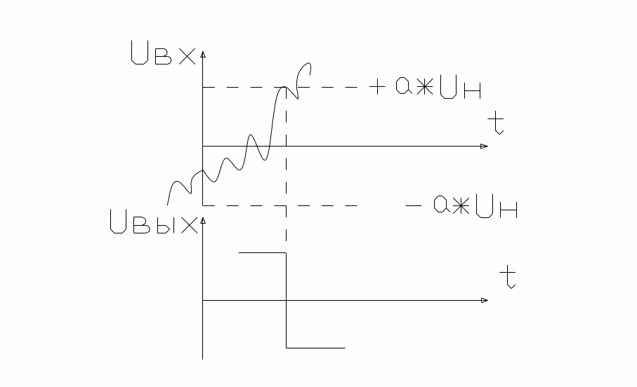 Основным недостатком данной схемы является наличие многократного переключения компаратора в интервалы времени соответствующие моментам перехода через ноль. Это явление обусловлено наличием шума во входном сигнале (в Uоп. тоже может быть шум) для устранения этого явления используют цепь положительной обратной связи. ПОС или компаратор с гисторезистором: