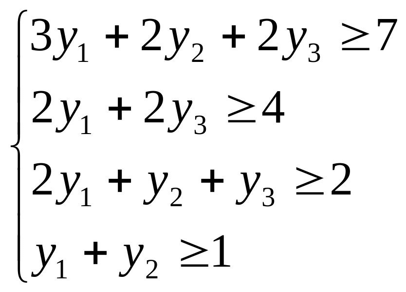 Економіко-математична модель двоїстої задачі наступна: