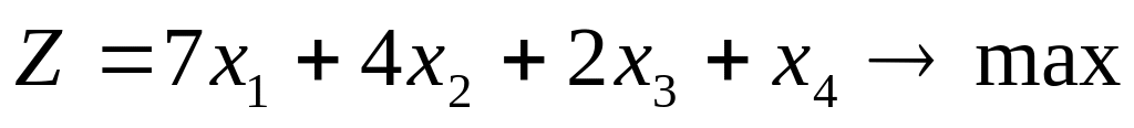 Підприємство виготовляє 4 види продукції, використовуючи для цього три види ресурсів 1, 2, 3 (табл. 4). Визначити план виробництва продукції, що забезпечує підприємству найбільший дохід. Ціна одиниці продукції становить відповідно 7, 4, 2 та 1 у. о.