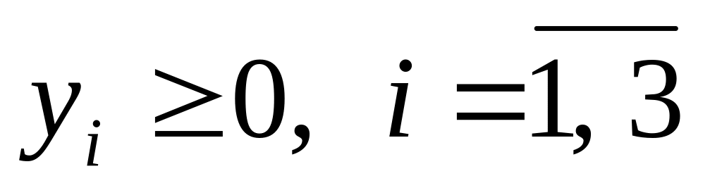 Змінна y1 двоїстої задачі пов’язана з x5 прямої, y2 – з х6, y3 – з х7.