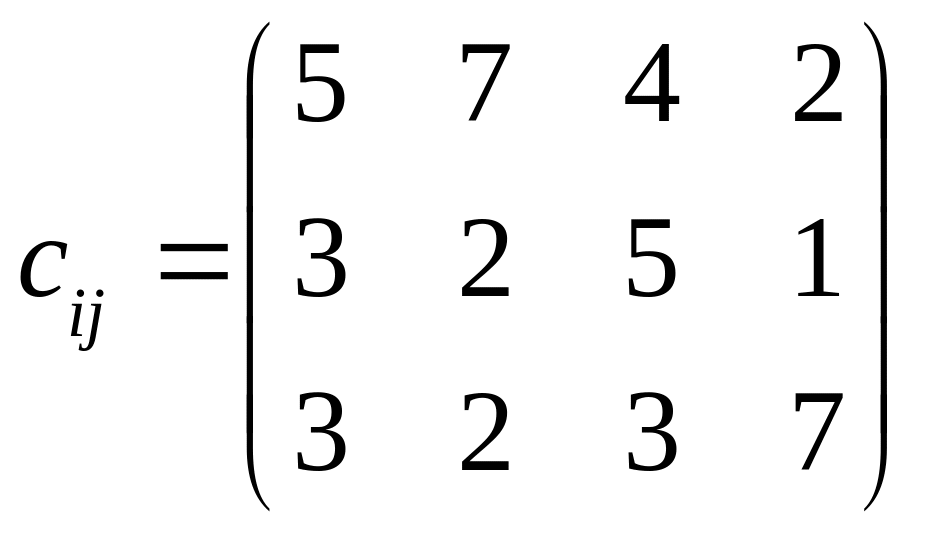 ai = (30; 35; 60); bj = (25; 25; 40; 30); |