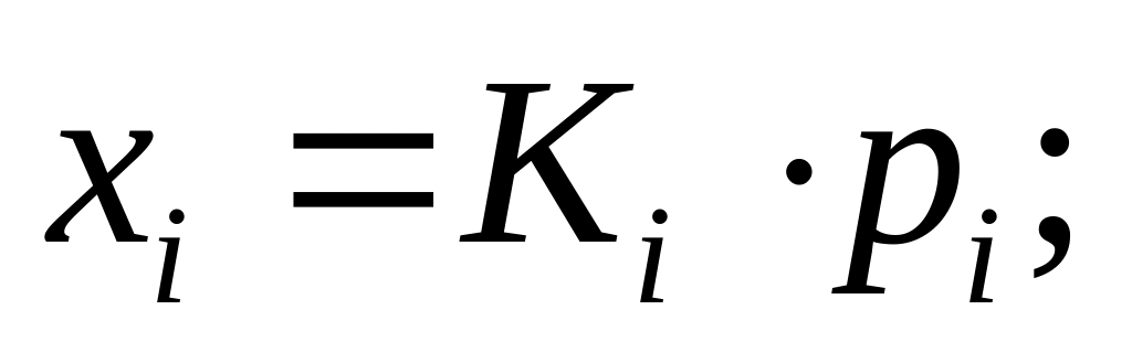 чистый газ находится под давлением насыщенного пара (ро), в смеси под парциальным давлением (рi);