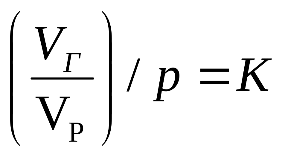 VГ/VЖ V2 объёмная доля растворённого газа, которая для идеального газа равна мольной доли (х2) следствие закона Авогадро. х2= КГ ∙ р2.