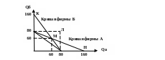 а) в точке К, когда объем выпуска фирмы Б достигает 160 единиц товара;