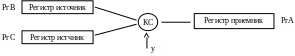 Данная комбинационная схема реализует сложение B и С, результат кладется в A. Y – управляющий сигнал.