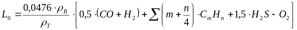 3. По составу топлива рассчитывается теоретически необходимое количество воздуха для сжигания 1 кг топлива, кг/кг: