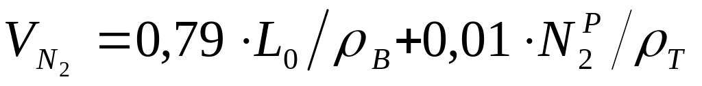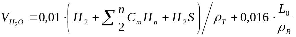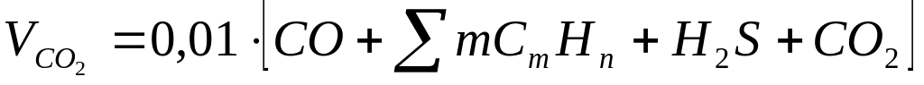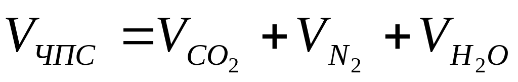 - полный объём «чистых» продуктов сгорания при коэффициенте избытка воздуха, равном единице, м3/кг: