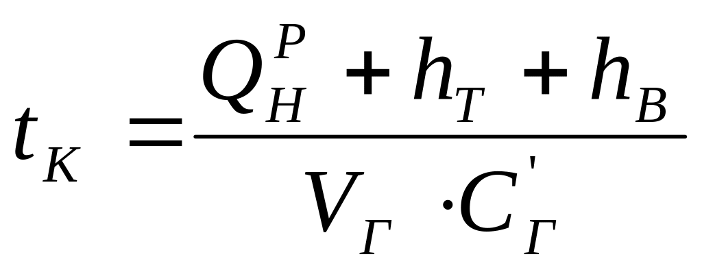 Калориметрической называют температуру, до которой нагрелись бы продукты полного сгорания, если бы вся теплота топлива и воздуха пошла на нагревание газов. Для этого случая тепловой баланс камеры сгорания запишется: