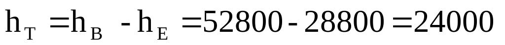 Процесс в турбине происходит при постоянном значений коэффициента избытка воздуха. Поэтому состояние газов на выходе из турбины определяется на переселения линий = 5,5 и t4 = 400°С (т. Е). Тогда теплоперепад в турбине будет равен:
