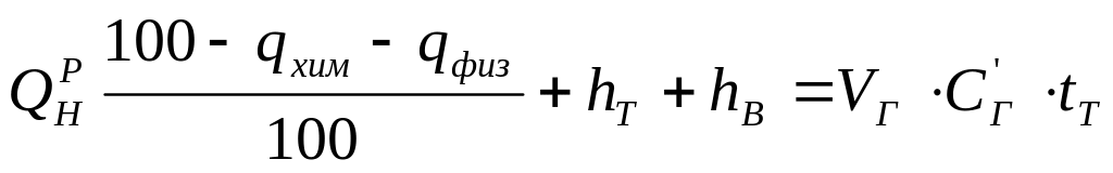 Тепловой баланс камера сгорания а этом случае можно записать так: