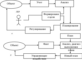 Управление объектом экономического профиля (предприятием, организацией, банком и т.д.) предполагает выполнение ряда функций, основными из которых являются: планирование, учет, анализ и регулирование. Для того, чтобы соотнести последовательность выполнения функций управления с последовательностью действий ЭС, вначале продемонстрируем повторяющийся цикл управления с помощью рис. 2.18 2.