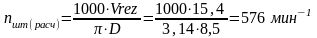 Определяем частоту вращения шпинделя для реализации полученной скорости:
