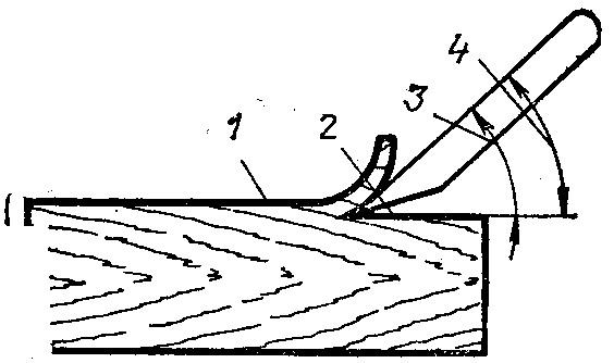Рис. 12. 1 - обрабатываемая поверхность; 2 - обработанная поверхность; 3 - угол заточки; 4 - угол резания