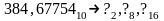 Задание. Перевести числа из десятичной системы счисления в двоичную, восьмеричную и шестнадцатеричную:
