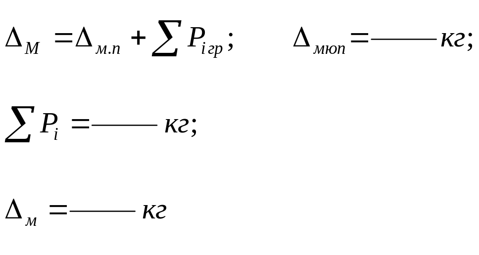 Весовое водоизмещение модели Δм находится как сумма весов порожней модели Δм.n и принятых на модель грузов ΣPгр: