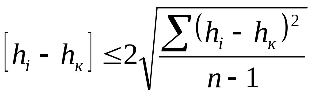 Измерения, не удовлетворяющие этому условию, исключаются из обработки с соответствующими изменениями общего количества n и повторным вычислением метацентрической высоты hк;